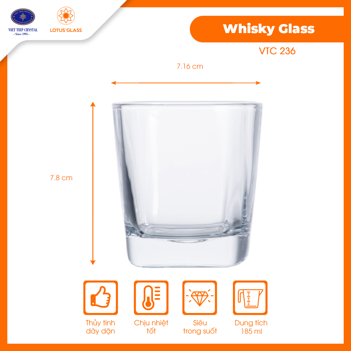 Ly thủy tinh VTC 236 dung tích 185ml là sản phẩm thuộc dòng đồ gia dụng cao cấp của Công ty TNHH Thủy tinh Pha lê Việt Tiệp, được sản xuất trên dây chuyền công nghệ hiện đại từ Cộng hòa Séc. Thiết kế ly dáng tròn nhỏ gọn, trơn tinh tế, kết hợp họa tiết in hoa hồng anh men cát nổi bật, mang lại vẻ đẹp thanh lịch và sang trọng. Với dung tích 185ml, sản phẩm rất thích hợp dùng trong gia đình, văn phòng hoặc các quán café, nhà hàng.