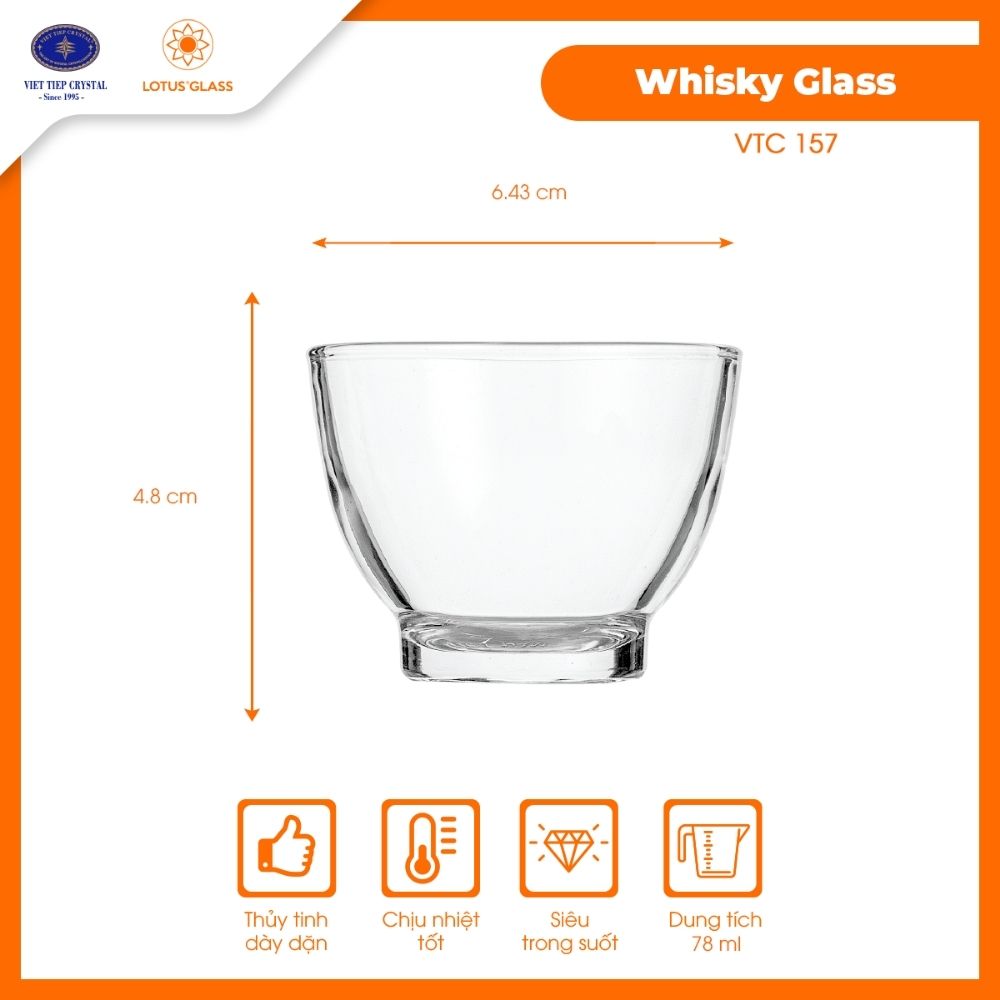 Chén thủy tinh uống rượu Việt Tiệp VTC 157 là dòng sản phẩm thuộc Lotus Glass – thương hiệu thủy tinh gia dụng cao cấp của Việt Tiệp. Với thiết kế nhỏ gọn, độ trong suốt ấn tượng và độ bền cao, VTC 157 là lựa chọn hoàn hảo để thưởng rượu truyền thống, rượu mạnh hay sử dụng tại các quán ăn, nhà hàng.