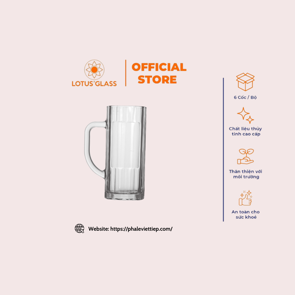 Cốc thủy tinh bia có quai VTC 212 dung tích 405ml là sản phẩm cao cấp của Công ty TNHH Thủy tinh Pha lê Việt Tiệp. Với thiết kế dáng cao thon gọn, thân cốc trơn trong suốt cùng quai cầm chắc chắn, sản phẩm mang đến sự sang trọng và thoải mái khi thưởng thức bia hay các loại đồ uống mát lạnh.