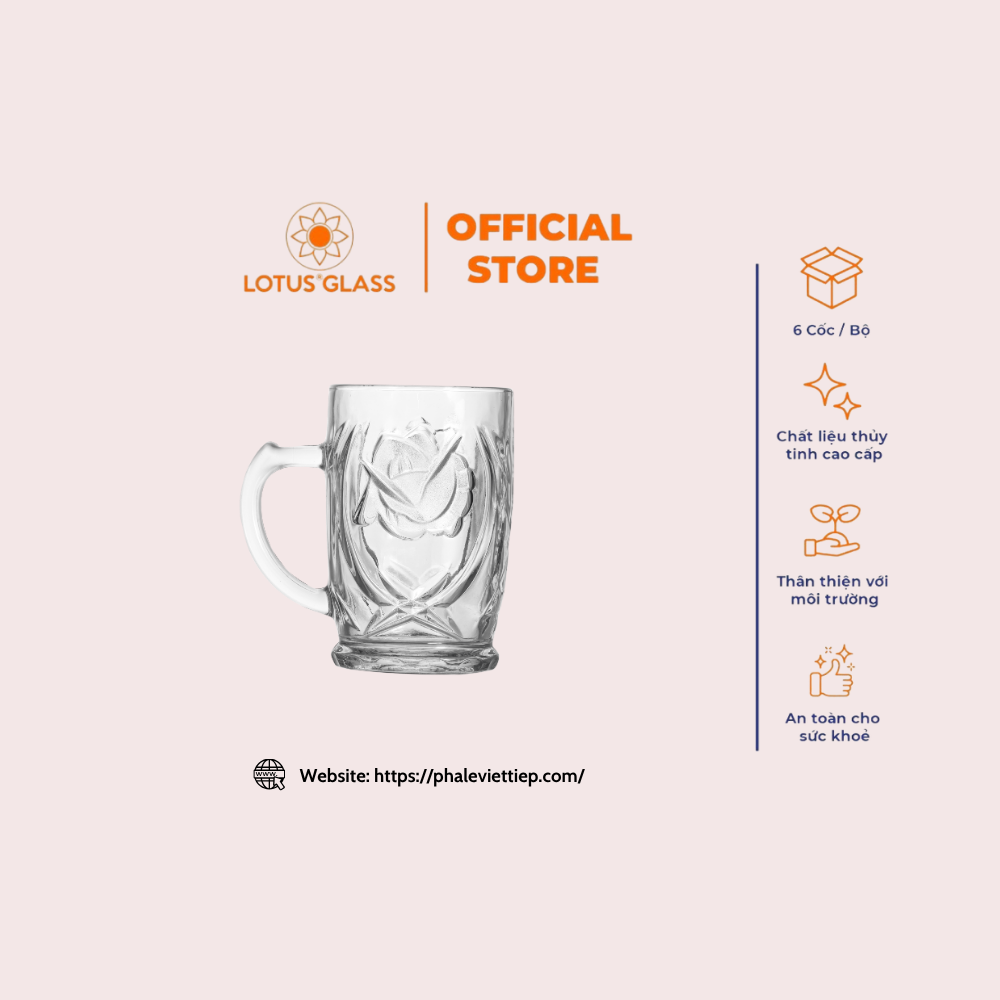 Cốc thủy tinh bia có quai VTC 231 Việt Tiệp cao cấp