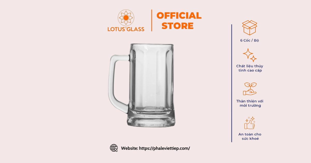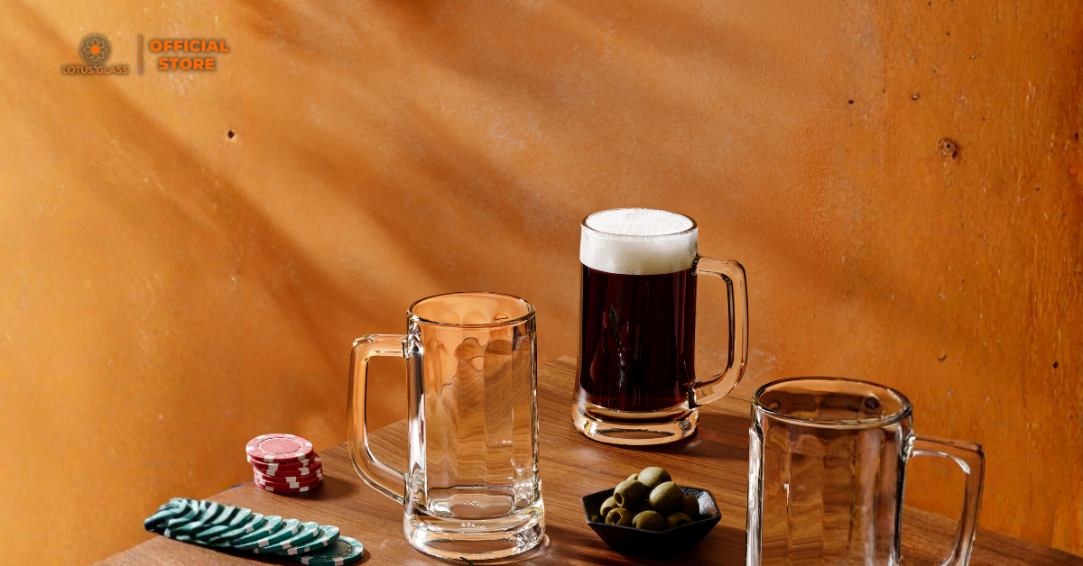 Cốc thủy tinh bia có quai VTC 312 Việt Tiệp sang trọng