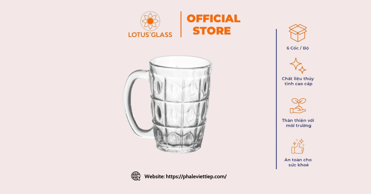 Cốc thủy tinh bia có quai VTC 52 Việt Tiệp sang trọng