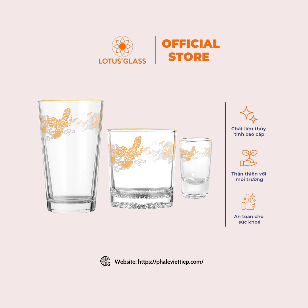 Bộ ly Lý Ngư Hóa Long đến từ thương hiệu Lotus Glass mang biểu tượng cá chép vượt vũ môn đại diện cho may mắn, tài lộc và sự thành công. Sở hữu chất liệu thủy tinh cao cấp, trong suốt và sắc né. Bộ sản phẩm gồm 3 kích thước khác nhau, đáp ứng đa dạng nhu cầu