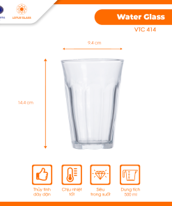 Cốc được làm từ chất liệu thủy tinh trong suốt, dày dặn, mang lại cảm giác cầm nắm chắc tay và độ bền cao, chịu được va đập nhẹ. VTC 414 là sự lựa chọn được yêu thích tại các quán cà phê, nhà hàng nhờ sự kết hợp giữa công năng vượt trội và kiểu dáng quen thuộc, dễ sử dụng.