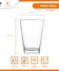 Cốc được làm từ chất liệu thủy tinh trong suốt, có độ sáng bóng cao, không chỉ an toàn cho sức khỏe mà còn giúp tôn lên trọn vẹn màu sắc của thức uống. VTC 802 là sự lựa chọn tinh tế, kết hợp giữa phong cách tối giản và tính ứng dụng cao.