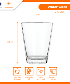 Cốc được làm từ chất liệu thủy tinh trong suốt, có độ sáng bóng cao, không chỉ an toàn cho sức khỏe mà còn làm nổi bật màu sắc tự nhiên của thức uống. VTC 803 là sự lựa chọn được ưa chuộng nhờ thiết kế tinh tế và tính ứng dụng cao trong mọi hoàn cảnh.